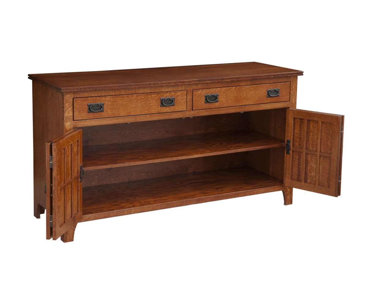 Features: • Wood doors with mullions • Dovetailed drawers • Full extension drawer slides • Leaves can store behind doors • Doors fold open for easy access